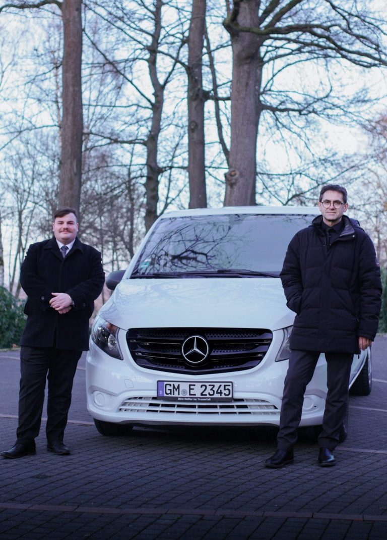 Mit unserem Mercedes-Benz Vito gewährleisten wir eine zuverlässige und respektvolle Begleitung, er vereint Zurückhaltung, Komfort und Würde.